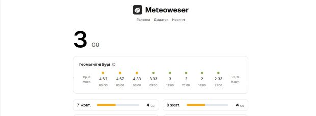 Геомагнітний фон 8 жовтня. Фото: Скріншот Meteoweser