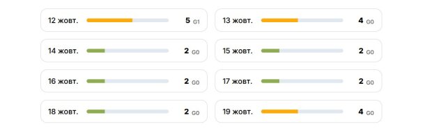 Проте вже 19 жовтня варто очікувати наступний сплеск геомагнітної активності. Кр-індекс знову підніметься до помаранчевого рівня та сягне 4-х балів.